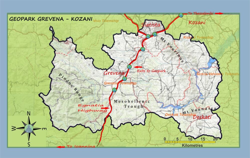 Τα όρια του Γεωπάρκου Γρεβενών – Κοζάνης έχουν καθοριστεί σύμφωνα με τα διαθέσιμα γεωλογικά δεδομένα με επιστημονική τεκμηρίωση λαμβάνοντας υπόψη τις προδιαγραφές για την ένταξή του στο παγκόσμιο δίκτυο Γεωπάρκων της UNESCO και απεικονίζονται στον ακόλουθο Χάρτη: